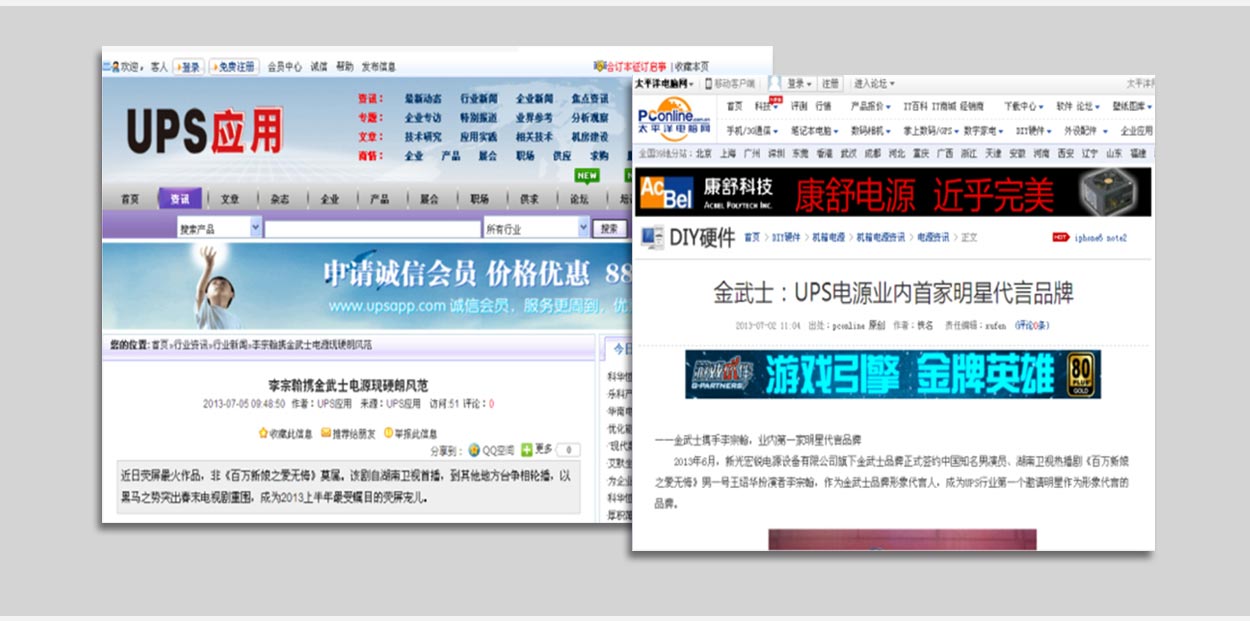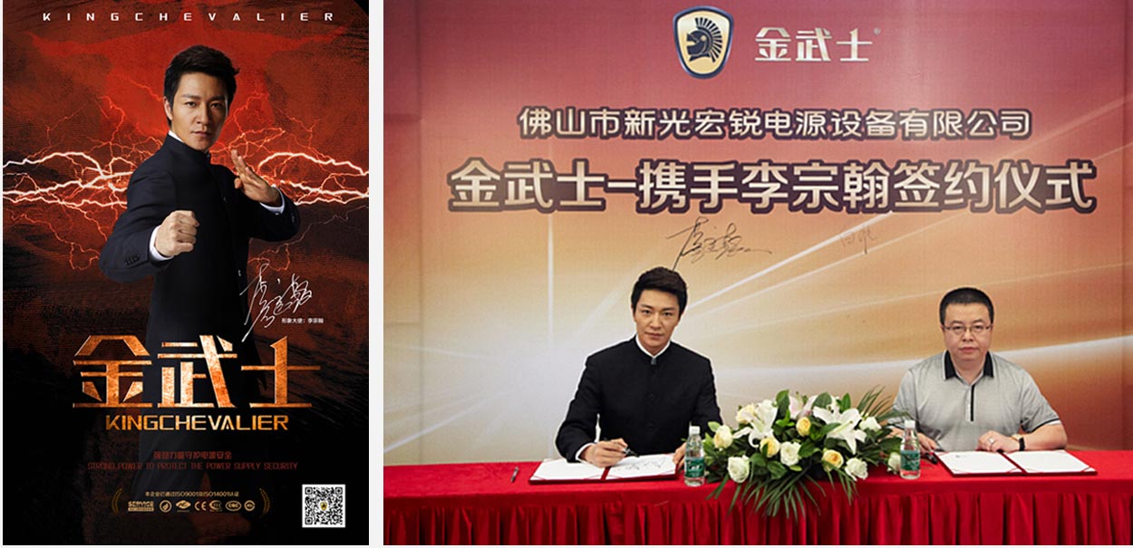 在CCBD中擂的協助下,2013年6月21日,新光宏銳電源設備有限公司金武士品牌正式簽約中國知名男演員、湖南衛視熱播劇《百萬新娘之愛無悔》男一號王紹華扮演者李宗翰先生作為金武士品牌形象代言人,成為UPS行業第一個邀請明星作為形象代言的品牌。通過系列的宣傳推廣,極大地提升了金武士品牌的市場知名度與美譽度。
