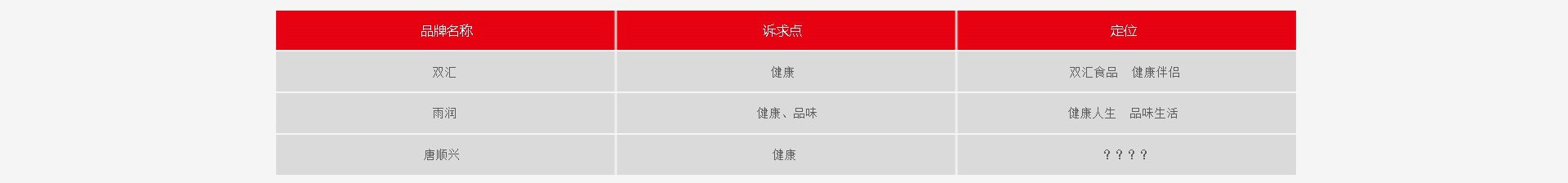 包括雙匯、雨潤等一線企業都在打“健康”牌,手法大同小異,如何打出唐順興自己與眾不同的健康牌,這就是我們品牌建設需解決的首要問題。